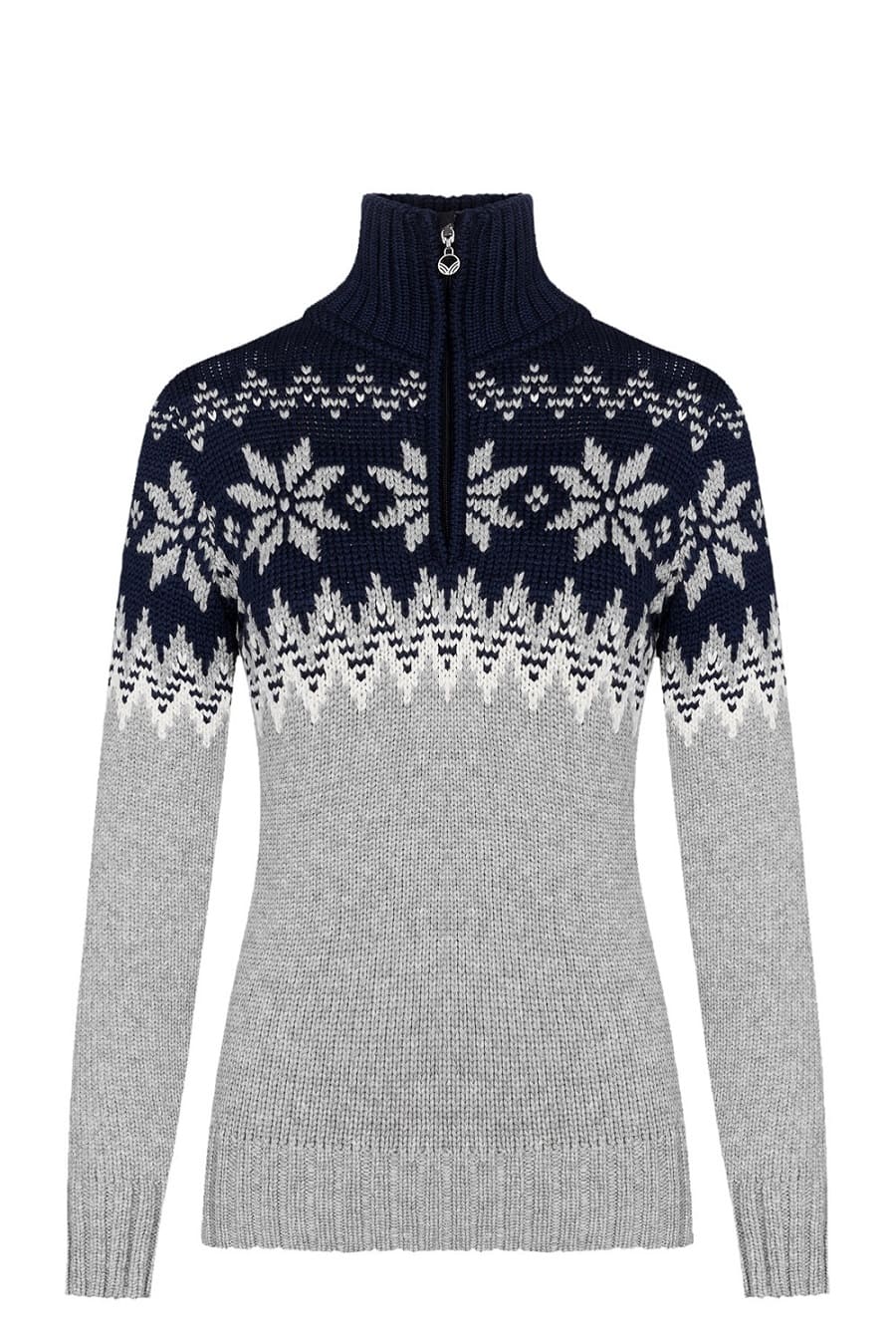 Dieser warme Norweger Merino Pullover für Damen hat einen extra hohen, anschmiegsamen Kragen und einen langen Schnitt. Die dicke Heavy-Knit Strickstruktur vereint sich mit extra feiner Premium Merinowolle (19,5 Mikron) zu einem bequemen Kuschelpulli mit modernem Norwegermuster. Der Dale Myking Sweater ist perfekt als Midlayer für eiskalte Wintertage und ein Wohlfühlkleidungsstück von hervorragender Qualität.