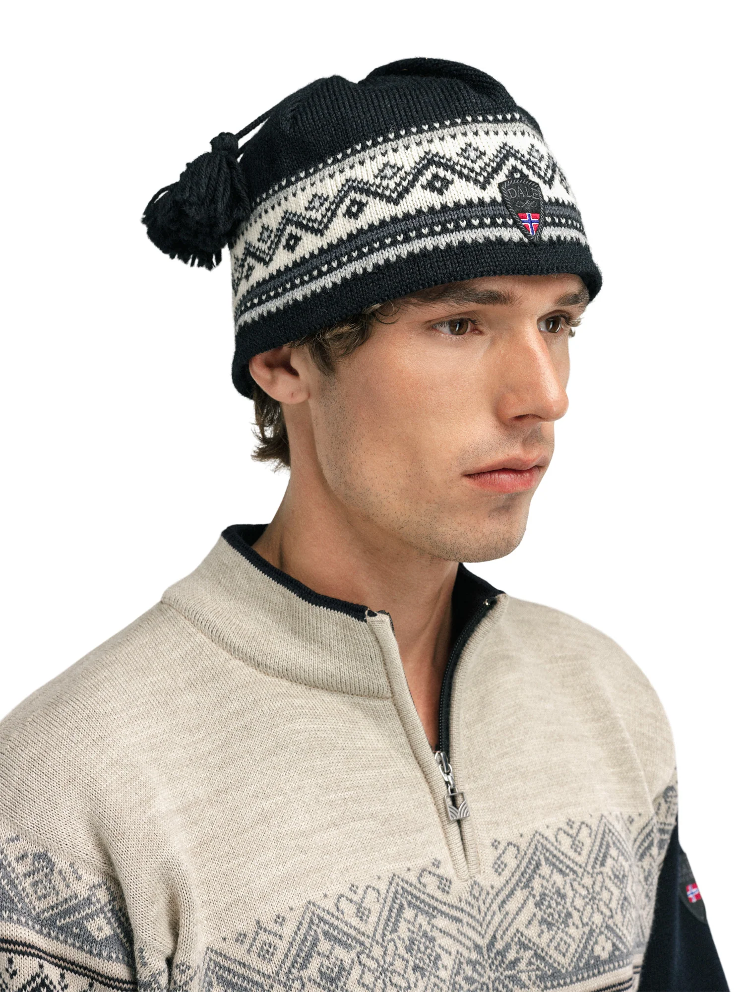 Die Dale of Norway Vail Hat ist eine dicke und grob gestrickte Norweger Mütze für Männer und ist durch die robuste norwegische Schurwolle außen langlebig und schneefest. Für einen kratzfreien Tragekomfort ist auf der Innenseite die Stirnpartie mit einem Lining aus Merinowolle besetzt. Die warme Wollmütze eignet sich zum Skifahren und Winterwandern bei Minusgraden.