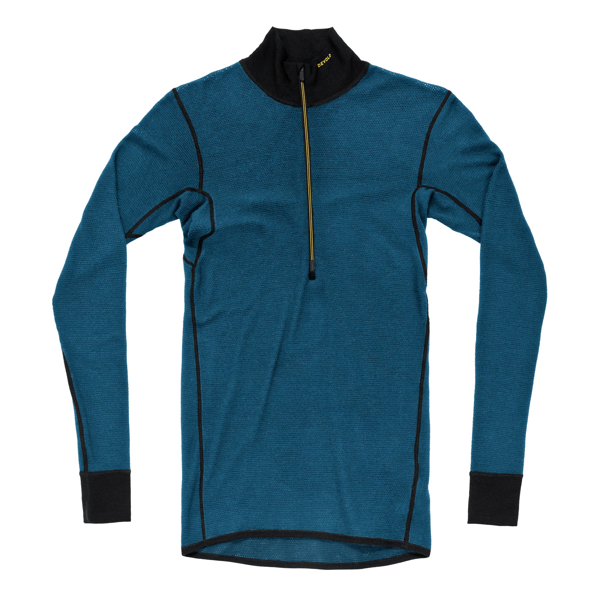 Das Devold Wool Mesh Half Zip Shirt für Männer ist eine netzartige Merino Funktionsunterwäsche, die einerseits besonders hohe Atmungsaktivität mit einer Luftpolster bindenden Stoffstruktur in Verbindung bringt. Der innovative Merino Mesh Stoff ist auch ohne Elasthan extrem dehnfähig und passt sich wie eine zweite Haut deiner Körperform an. Das Devold Wool Mesh Material eignet sich daher speziell für leistungsintensive Sportarten, wie Speed Skitouren, Cross Country Ski oder Intervall Training im Winter. Gerade bei kalten Außentemperaturen und gleichzeitig starkem Schwitzen ist die hohe Dampfdurchlässigkeit des Meshgewebes gepaart mit dem Wärmerückhalt von Merinowolle im feucht-nassen Zustand von entscheidender Bedeutung für die Vermeidung von Erkältungen. Hierin liegt neben der Geruchshemmung ein weiterer entscheidender Vorteil gegenüber jeder Kunstfaser, die nassgeschwitzt starke Verdunstungskälte produziert.