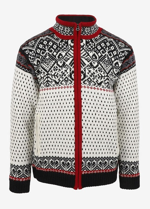Diese winddichte Norweger Strickjacke von Icewear ist aus besonders warmer 3-lagiger Kammgarnwolle aus Island gefertigt und mit einer atmungsaktiven Wind Cutter-K-100 Membran auf der Innenseite hinterlegt. Das authentische und kunstvoll gestrickte Norwegermuster wird eingefasst durch eine markante rote Bordüre am Kragen und Reißverschluss. Die Membrane ist durch einen dünnen und glatten Futterstoff hinterlegt, so dass die Innenseite nicht kratzig ist und sich leicht über andere Kleidung drüberziehen lässt. Die Norweger Windstopper Jacke vom isländischen Hersteller Icewear hat eine gerade, lockere Passform und eignet sich sowohl als Skijacke im moderaten Winter, wie auch für andere Outdooraktivitäten. Der hohe Kragen bietet effektiven Windschutz und ist mit weichem Fleece gefüttert. Die Icewear Bjarni Wollpullover hat vorn einen durchgehenden Reißverschluss und zwei verschließbare Seitentaschen. Leicht elastische Strickbündchen an Ärmeln und Saum vollenden den traditionellen Skandinavien Look.