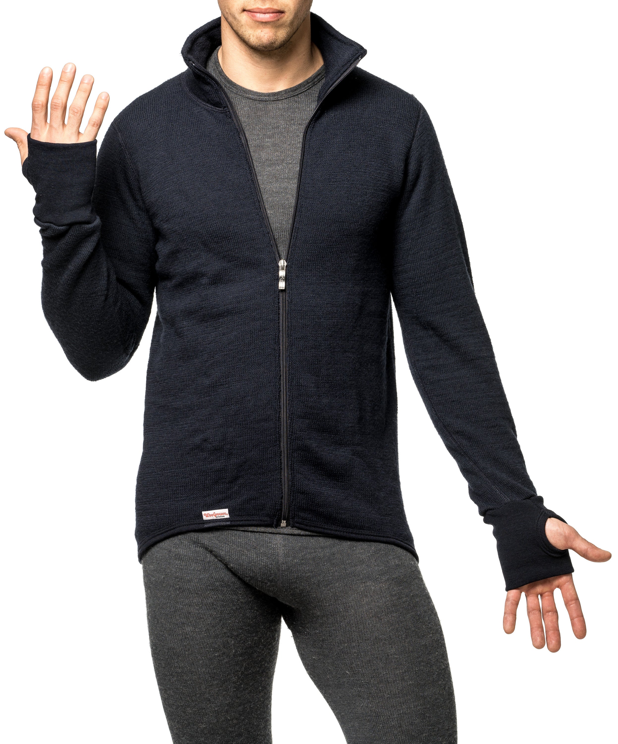 Diese extrem warme Merino Jacke wurde nicht nur für den nordischen Winter entwickelt, sondern auch in Schweden hergestellt. Mit dem Woolpower Full Zip Jacket 600 und seiner Merino Frotte Struktur auf der Innenseite, die durch eine langschlaufige Stricktechnik viel Raum für wärmende Luftpolster schafft, wird das Maximum an Wärmeleistung herausgeholt. Die dicke Merino Wolljacke bietet eine herausragende Wärmeleistung unabhängig davon, ob du aktiv bist und schwitzt oder dich ohne viel Bewegung lange draußen aufhalten musst. Der hoch abschließende Kragen und die Daumenschlaufen schützen vor eindringender Kälte und Schnee. Durch den durchgehenden Reißverschluss und den elastischen Stoff lässt sich die Merino Jacke komfortabel überziehen und dient in erster Linie als mittlere Bekleidungsschicht über der Unterwäsche, kann aber bei ruhiger Witterung auch als wärmende Außenschicht dienen. Die Ullfrotte 600 Serie von Woolpower ist daher erste Wahl nicht nur für den Wintersport in extremer Kälte, sondern auch als Berufsbekleidung aus Merinowolle z.B. für Jäger, Polizei oder Bundeswehr.